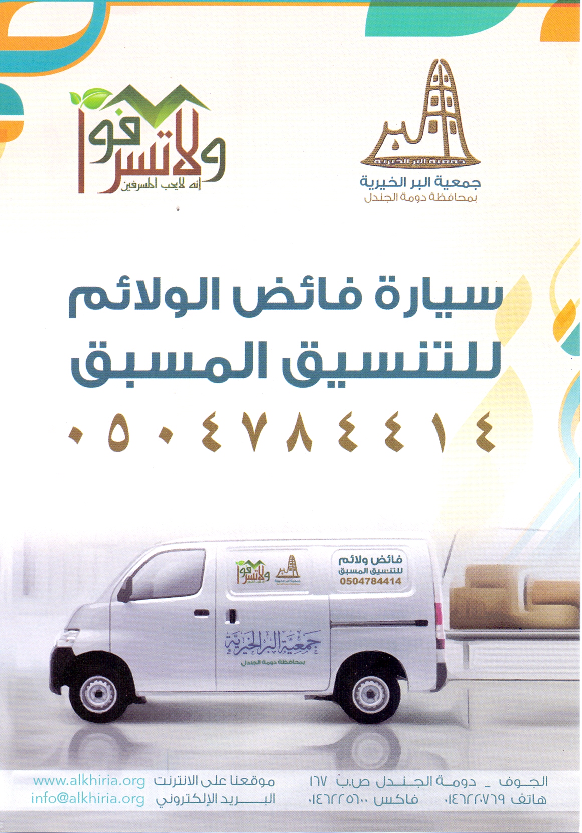 مشروع لا تسرفواالمديرسبتمبر 21, 2017قامت جمعية البر الخيرية بمحافظة دومة الجندل بمشروع لا تسرفو وهو أحد المشروعات المتميزة التي تقدمها الجمعية ... قراءة المزيد