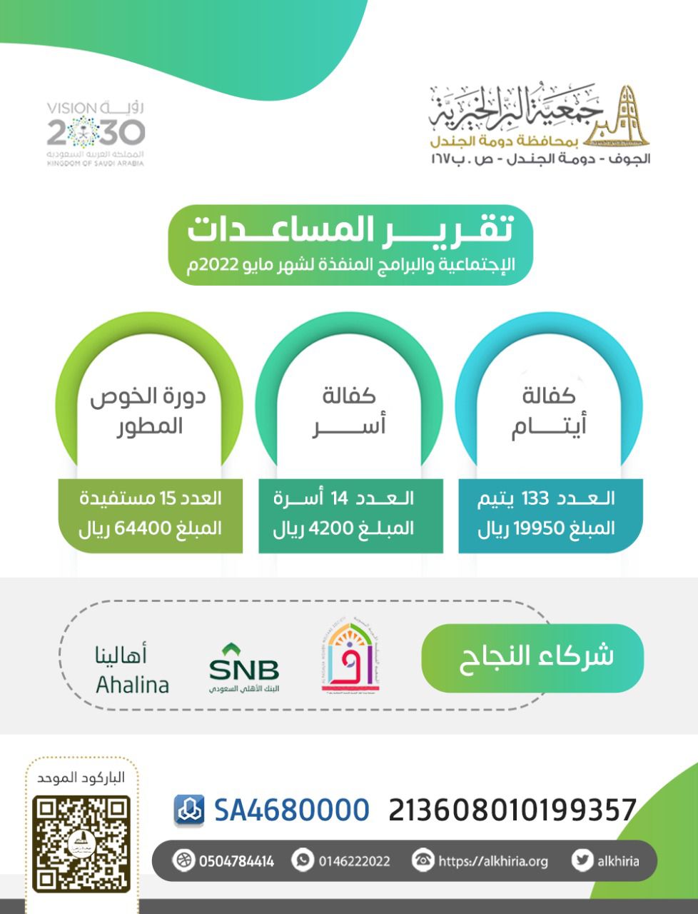 بالتعاون مع الجمعية الفيصلية الخيرية النسوية بجدة والبنك الأهلي (برنامج أهلينا) بدأ تنفيذ دورة الخوص المطور لعدد 15 مستفيدة من جمعية البر الخيرية بدومة الجندل ... قراءة المزيد