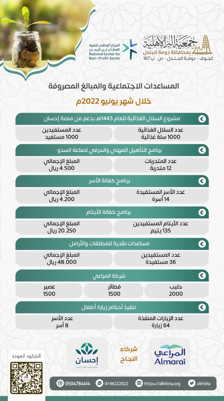 ضمن مشروع السلال الغذائية لعام 1443هـ وبدعم سخي من منصة إحسان استقبل مستودع جمعية البر الأهلية بدومة الجندل عدد 1000 سلة غذائية وتم البدء في ... قراءة المزيد