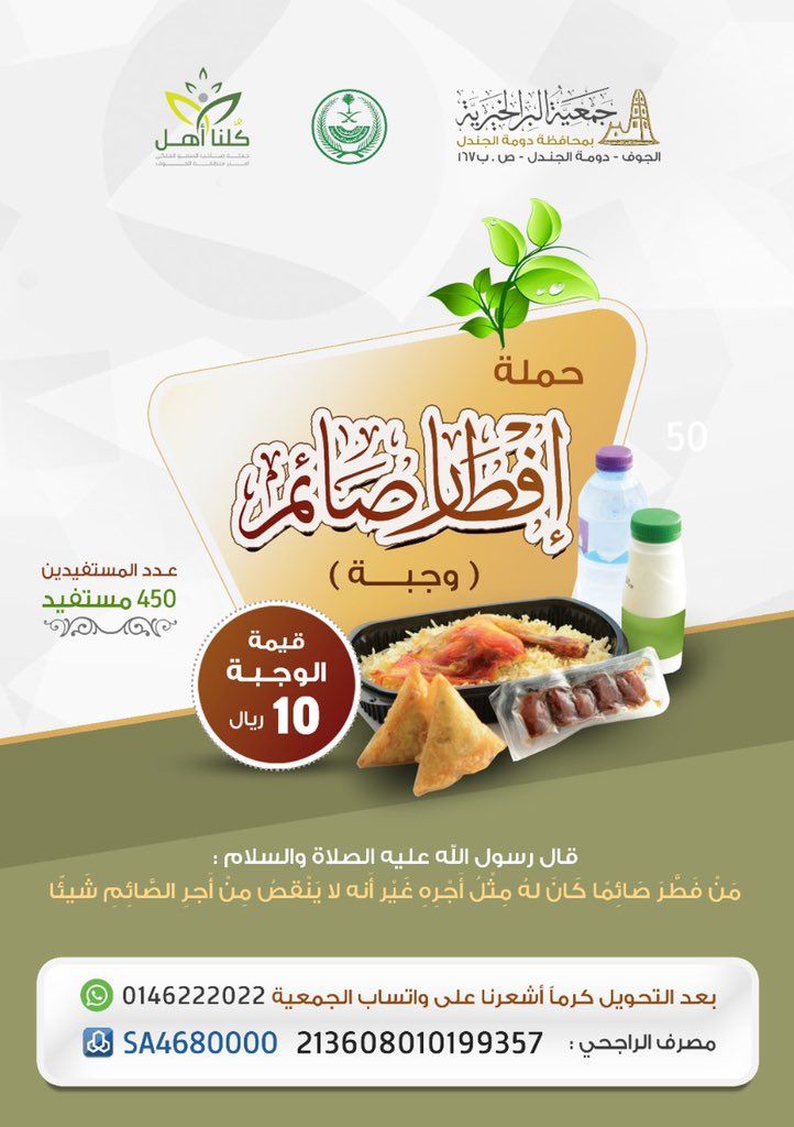 حملة دعم وجبة افطار صائم لشهر رمضان 1442هـ